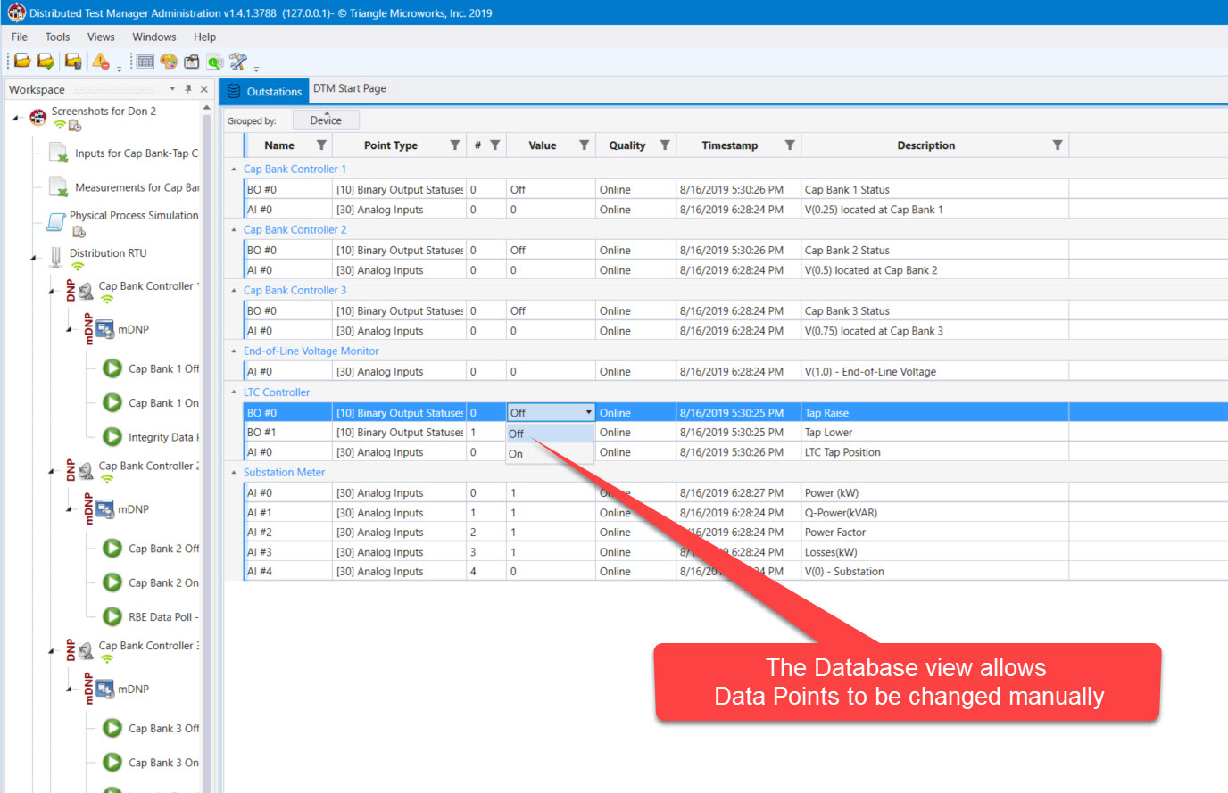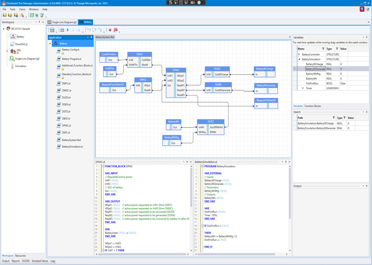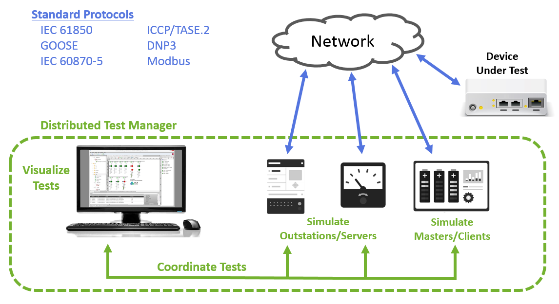 Distributed Test Manager (DTM) is a Windows® application that can simulate the SCADA communications in the substation and perform automated tests to confirm system or individual device behavior.