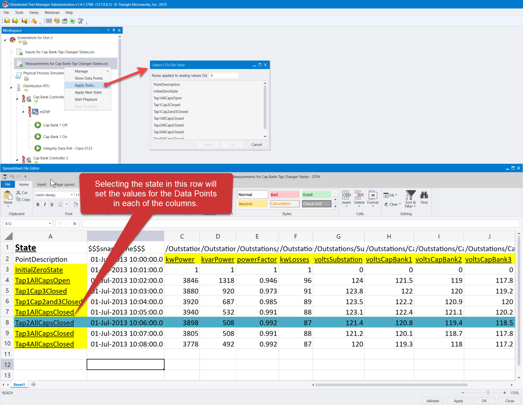 • Table Driven - playback data states with Comma Separated Value (CSV) files on multiple devices simultaneously