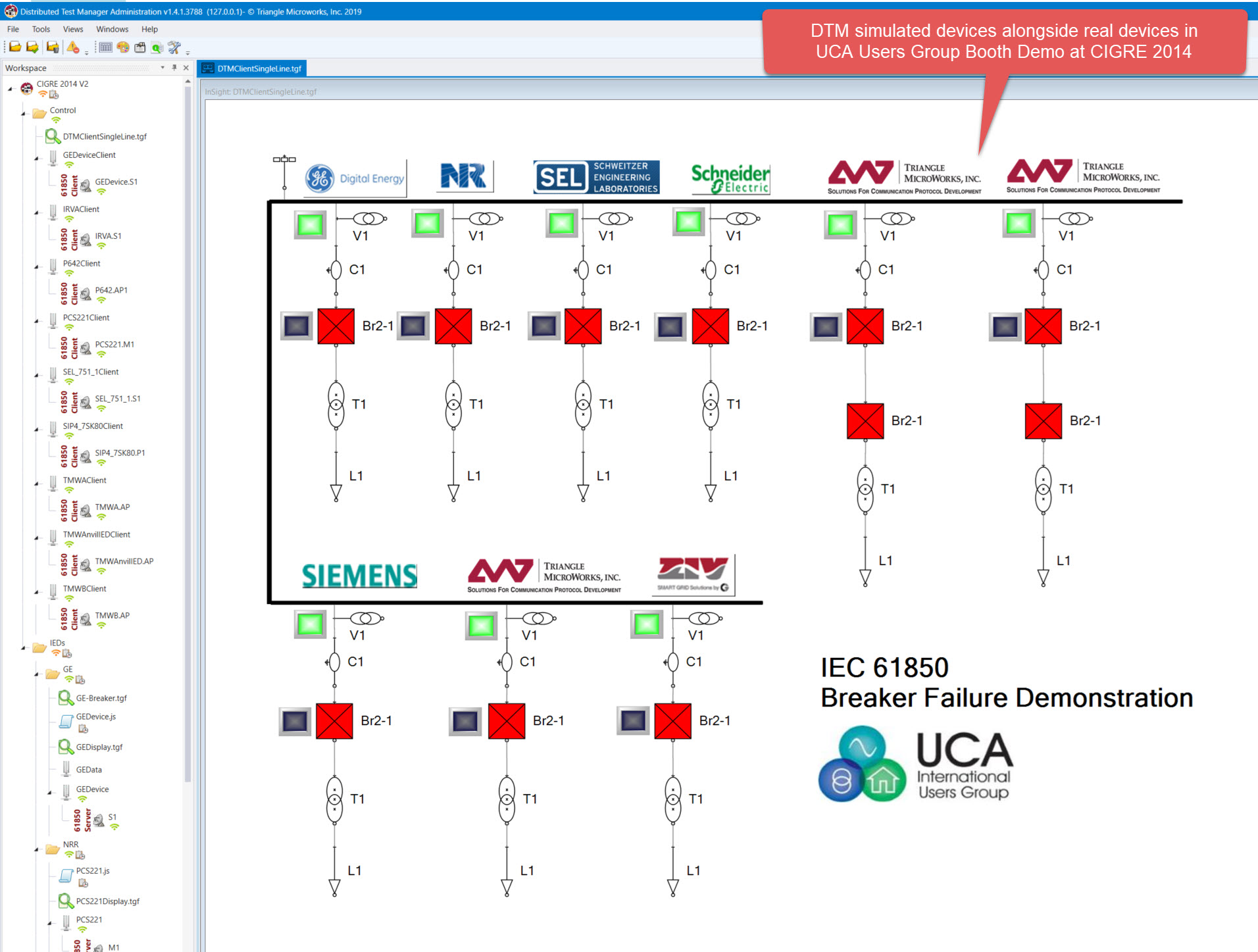 DTM Simulated Devices Alongside Real Devices in UCA Users Group Booth Demo at CIGRÉ 2014